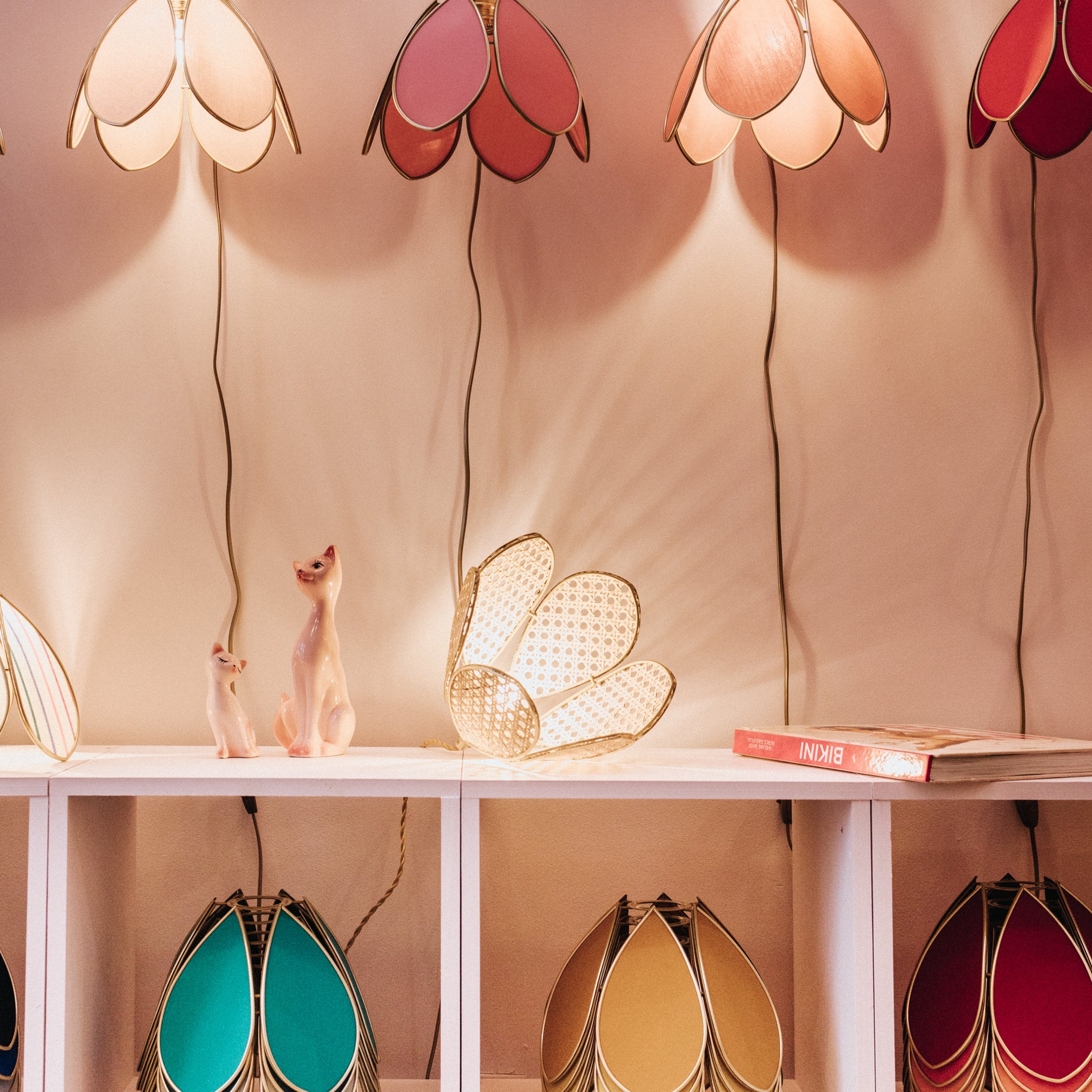 Toutes nos lampes fleurs sont fabriquées en France. Les armatures en métal doré proviennent d'une petite usine dans l'ouest de la France et nous les habillons à Villeurbanne, dans notre atelier.Les lampes Iva, ainsi que les pieds de lampes fleurs et les supports de baladeuse en laiton, sont fabriqués au Portugal.