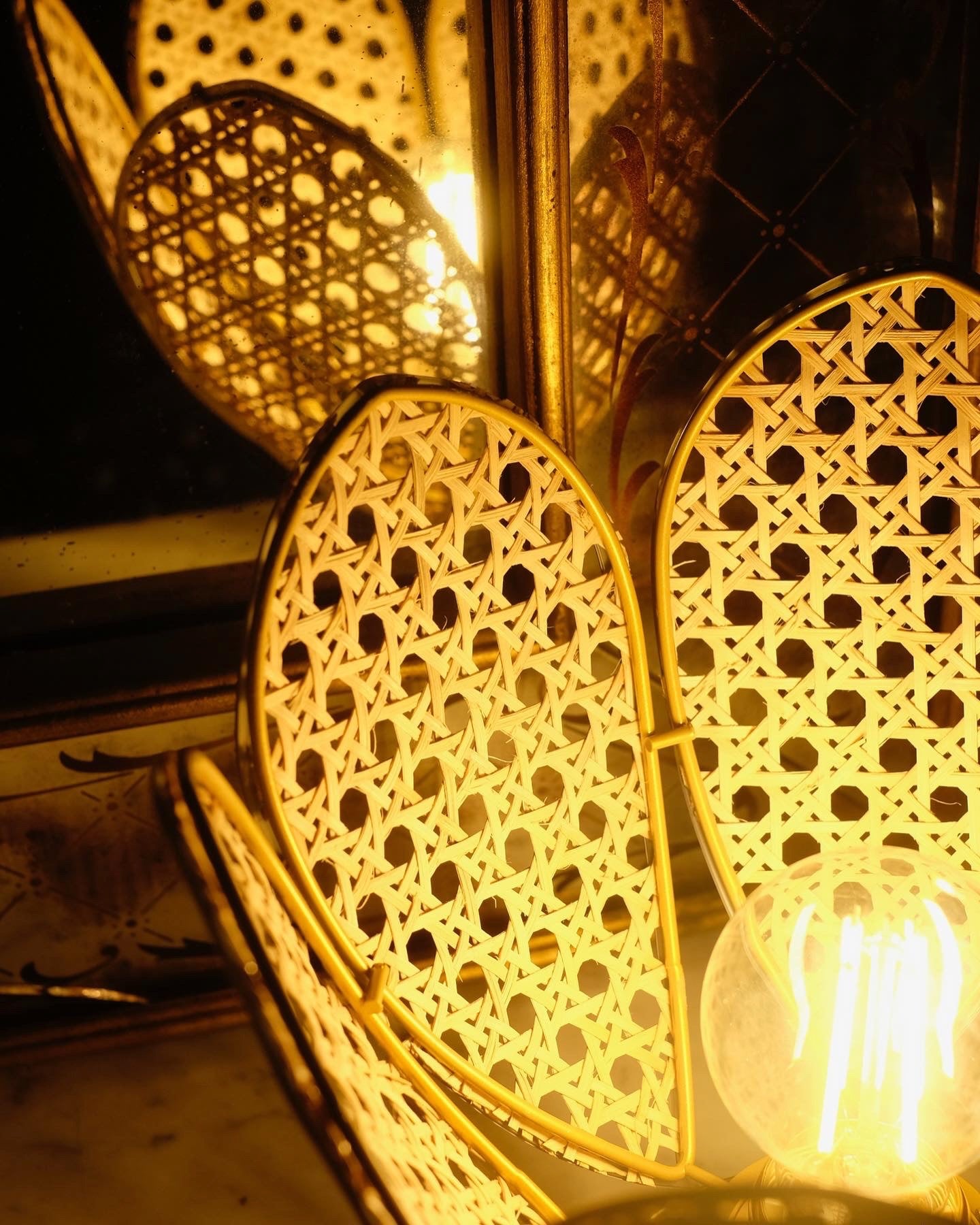 Chaque pétale est recouvert de cannage, qui diffuse une superbe lumière ajourée.