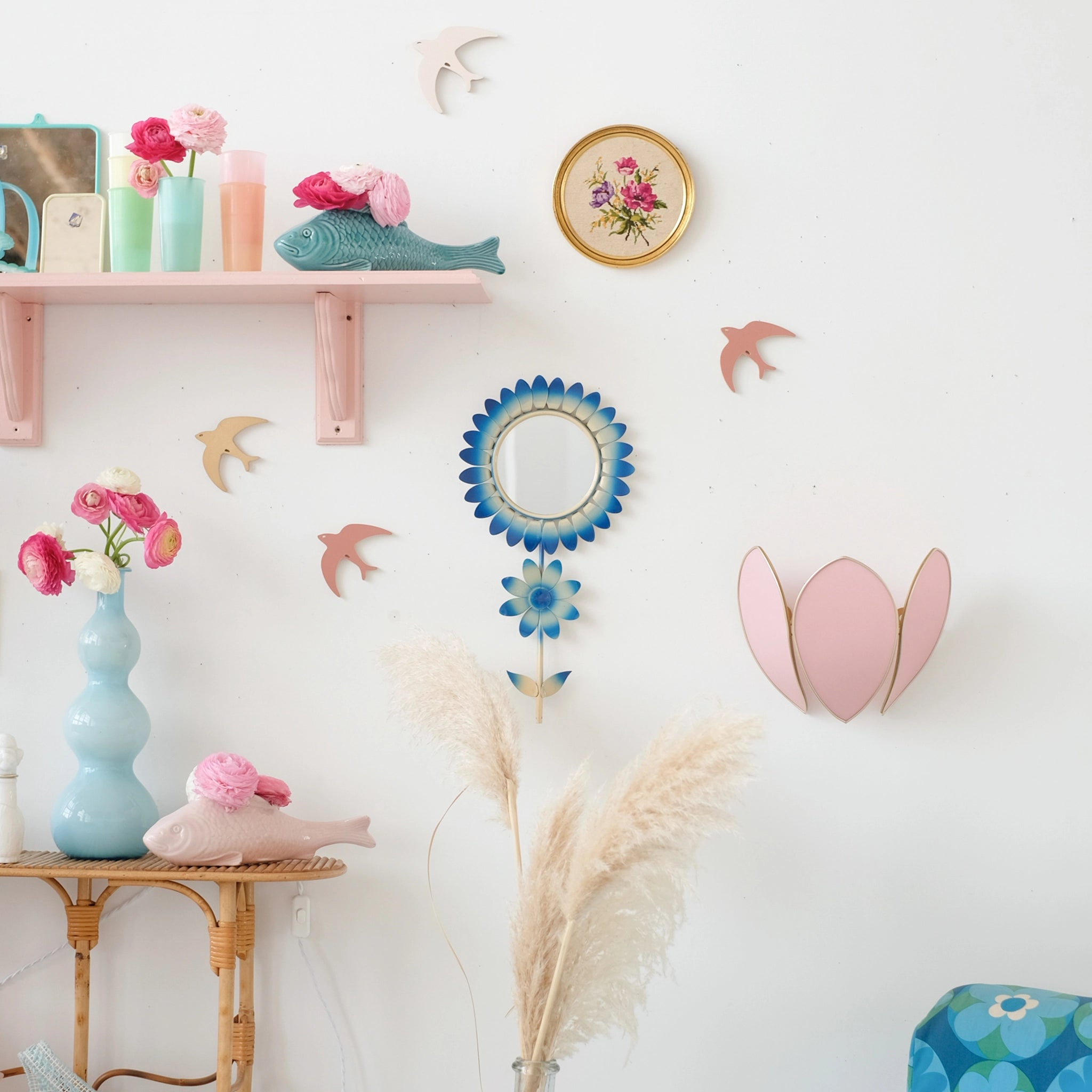 Ancien miroir Fleur en métal bleu