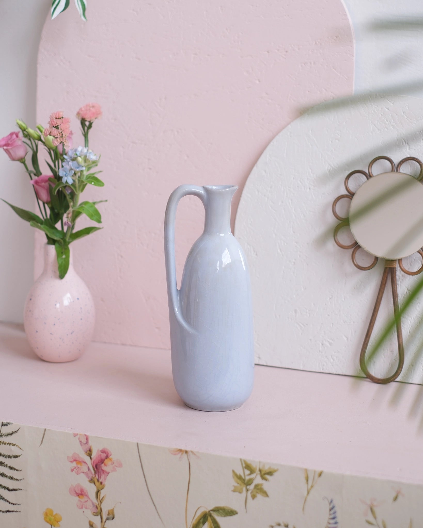 Ravissant pichet en faïence bleue, à utiliser à table ou comme vase.