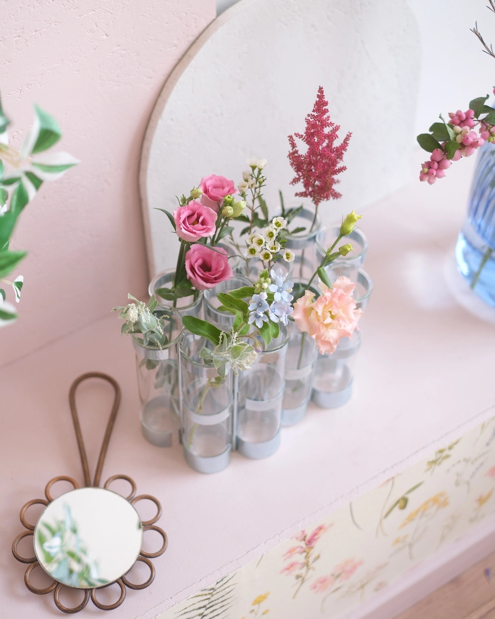 A géométrie variable, il se déploie, s'arrondit, se fragmente ou se referme selon l'envie. Chaque tube peut être retiré ou déplacé, offrant une modularité totale et un plaisir renouvelé de création. Quelques fleurs suffisent à le sublimer.