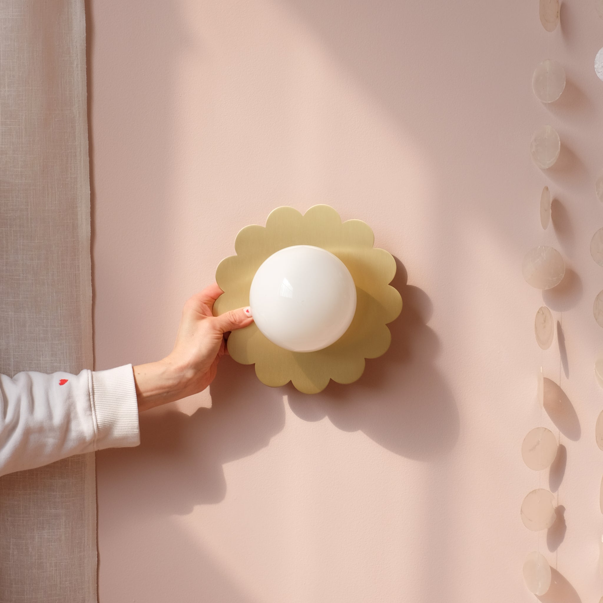 L'applique Louisa est la plus mignonne de la famille. Elle est fabriquée en laiton et opaline et apportera une touche délicate et très poétique à votre pièce.