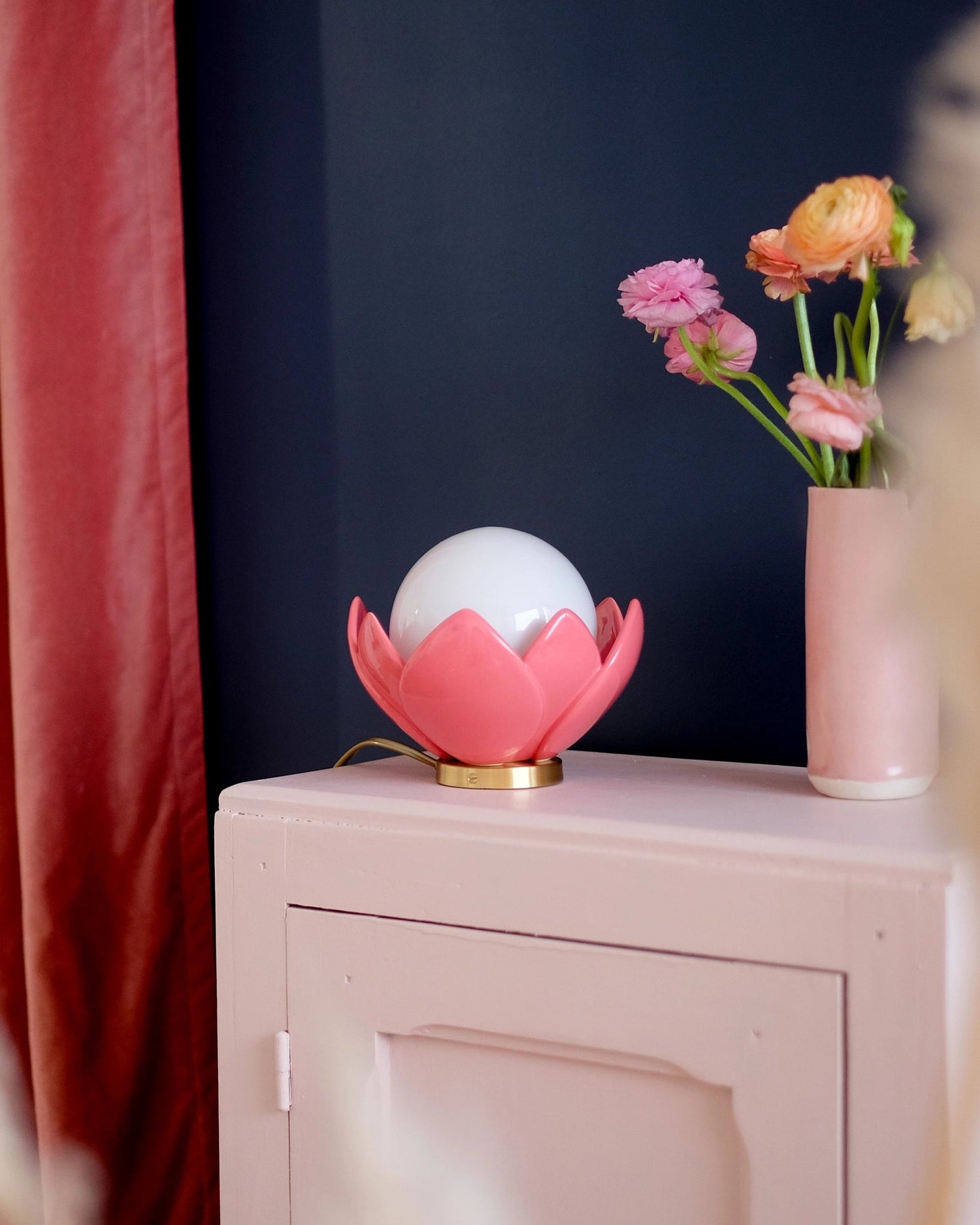 Toutes nos lampes fleurs sont fabriquées en France. Les armatures en métal doré proviennent d'une petite usine dans l'ouest de la France et nous les habillons à Villeurbanne, dans notre atelier.Les lampes Iva, ainsi que les pieds de lampes fleurs et les supports de baladeuse en laiton, sont fabriqués au Portugal.