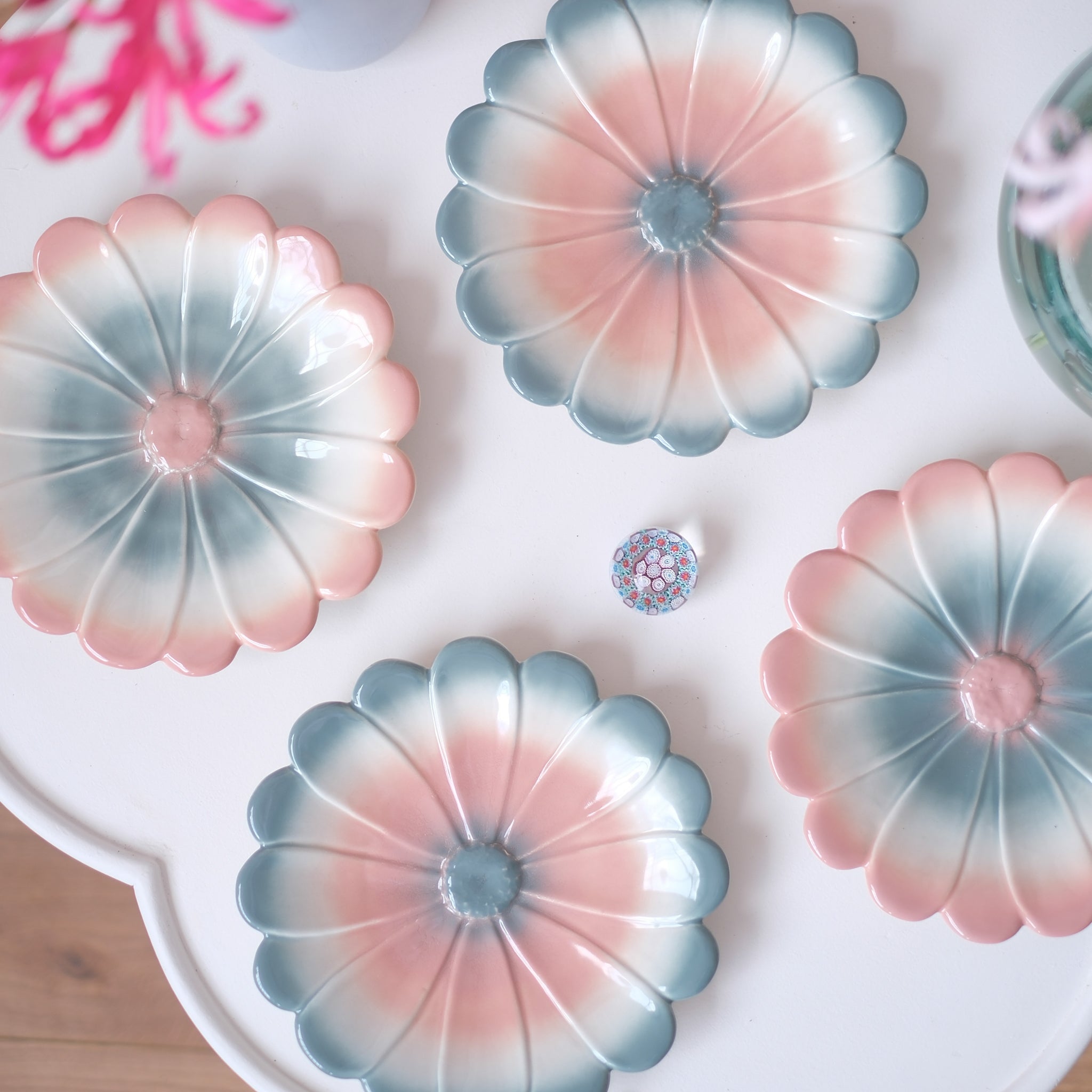 4 assiettes fleurs Marigold Cobalt et Rose, pour une table joyeuse et colorée !