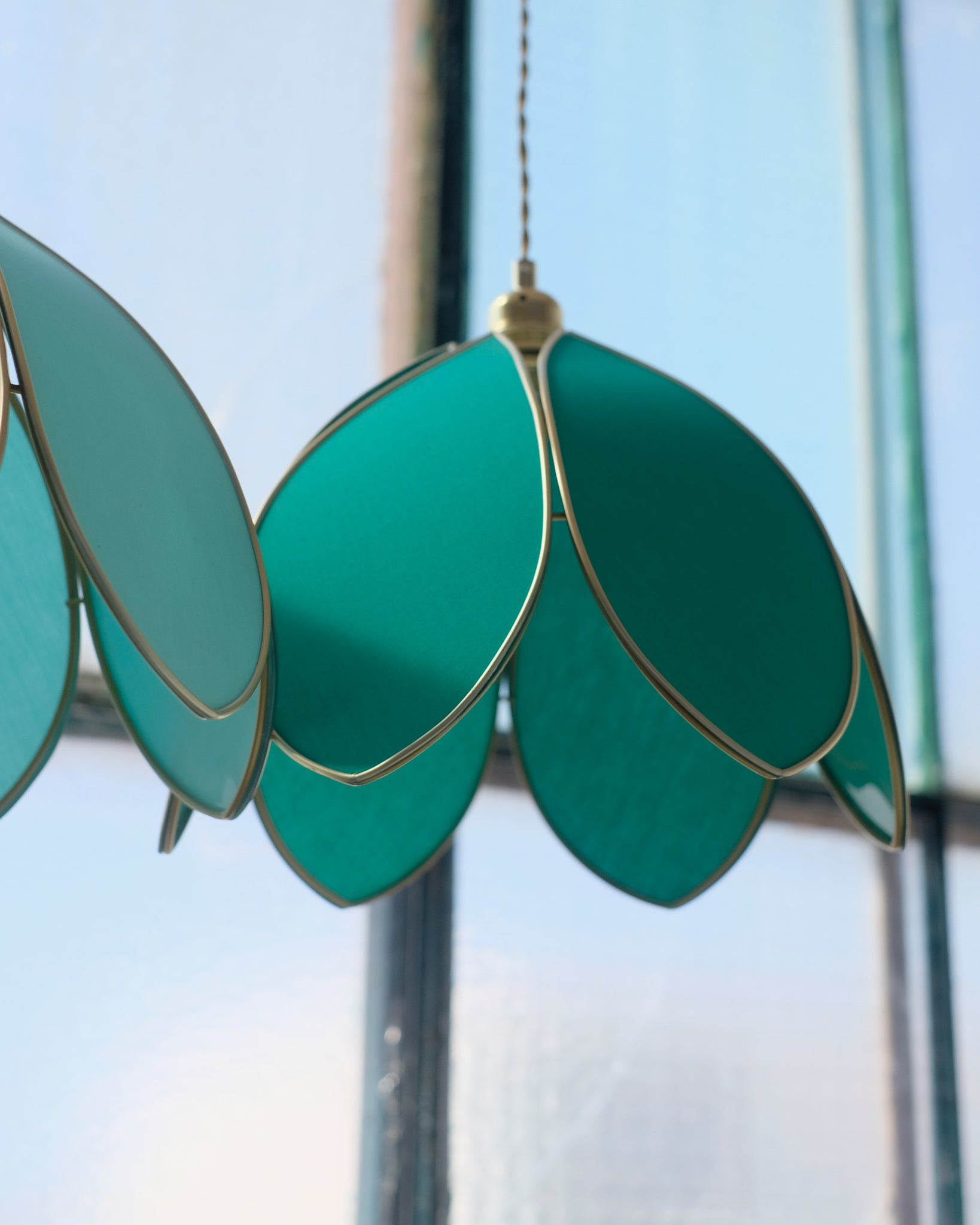 Chaque pétale est recouvert de polyphane, puis d'un tissu de couleur vert émeraude.