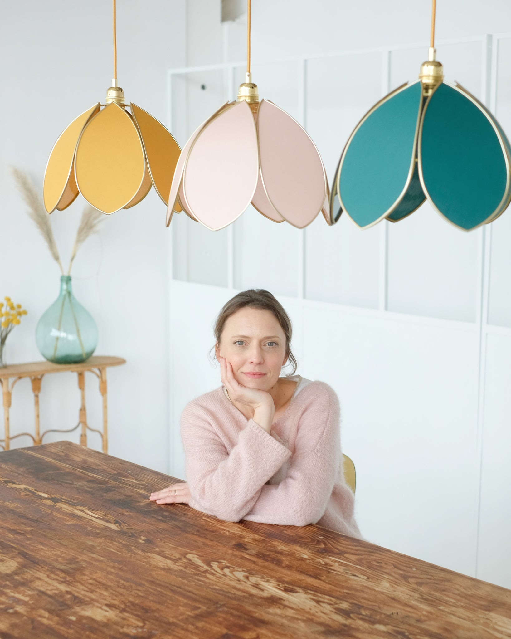 Toutes nos lampes fleurs sont fabriquées en France. Les armatures en métal doré proviennent d'une petite usine dans l'ouest de la France et nous les habillons à Villeurbanne, dans notre atelier.Les lampes Iva, ainsi que les pieds de lampes fleurs et les supports de baladeuse en laiton, sont fabriqués au Portugal.
