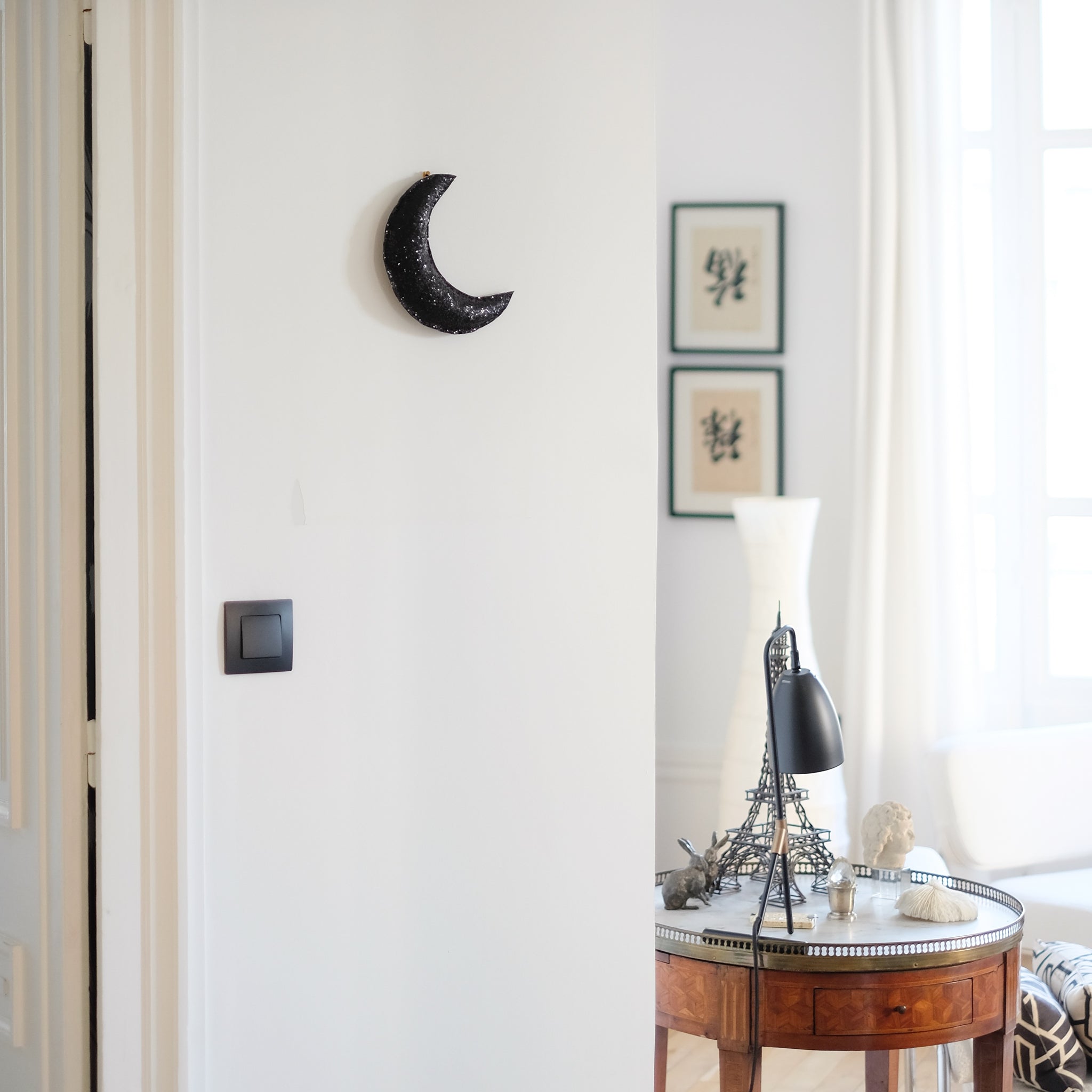 Une lune pailletée noire à accrocher au mur pour les meilleurs rêves.