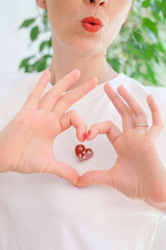 Nous avons imaginé ce petit pins pour le leur dire simplement : quelle autre place pourraient-elles avoir, que dans un coeur rouge sang ?