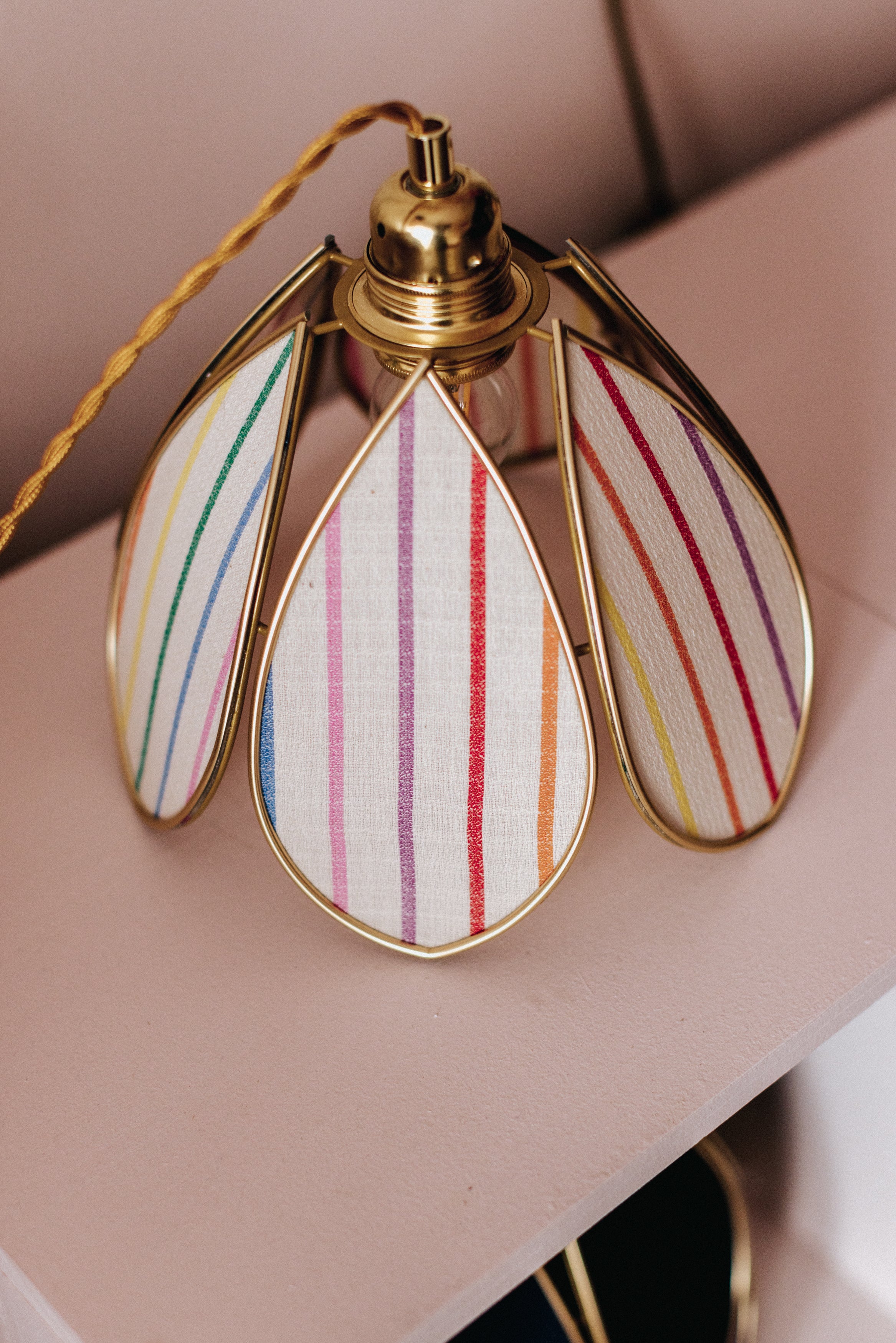Toutes nos lampes fleurs sont fabriquées en France. Les armatures en métal doré proviennent d'une petite usine dans l'ouest de la France et nous les habillons à Villeurbanne, dans notre atelier.Les lampes Iva, ainsi que les pieds de lampes fleurs et les supports de baladeuse en laiton, sont fabriqués au Portugal.