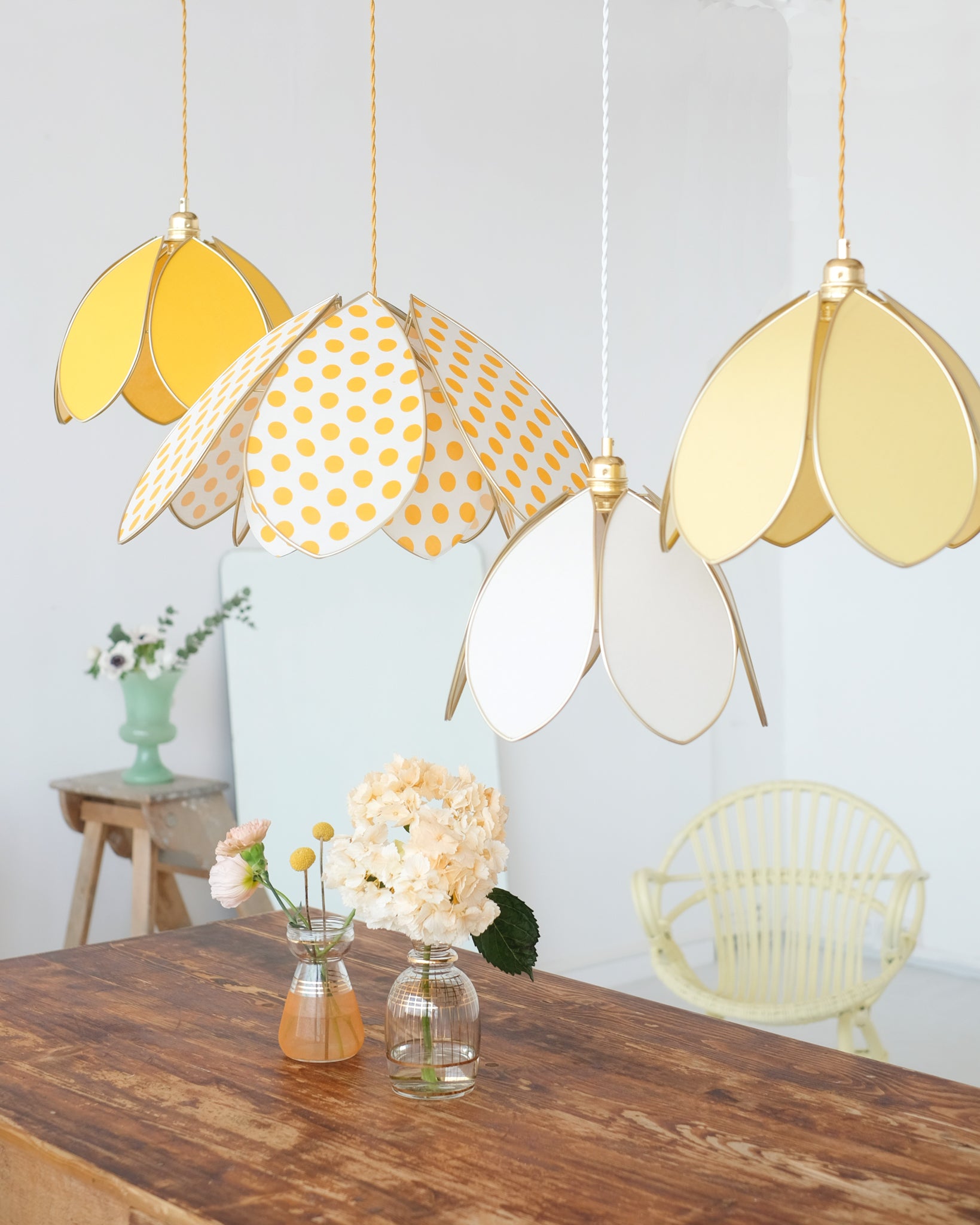 Suspension Fleur double - Blanc à pois jaunes