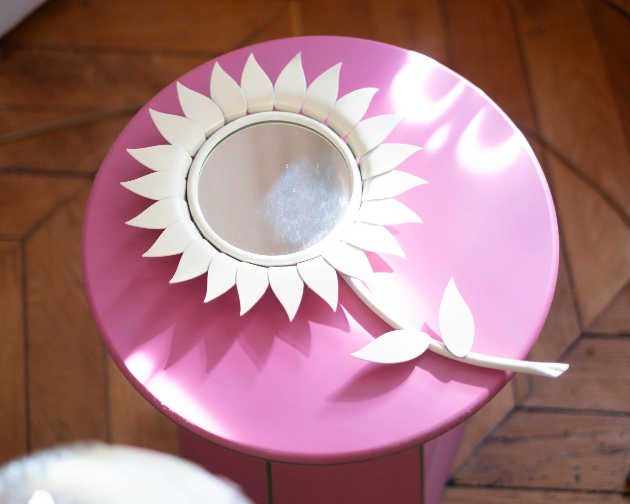 Ancien miroir Fleur en métal crème Chaty Vallauris