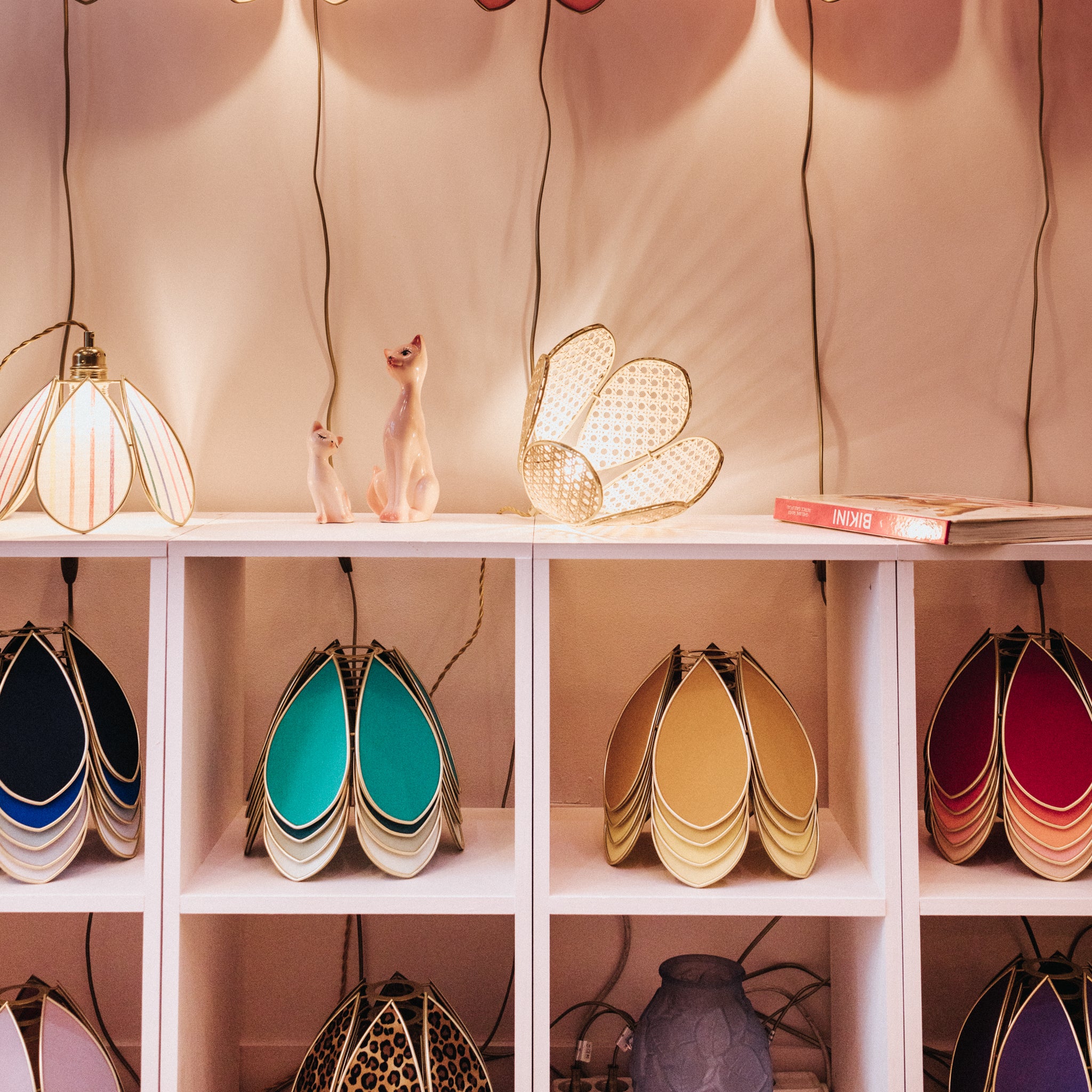 Toutes nos lampes fleurs sont fabriquées en France. Les armatures en métal doré proviennent d'une petite usine dans l'ouest de la France et nous les habillons à Villeurbanne, dans notre atelier.Les lampes Iva, ainsi que les pieds de lampes fleurs et les supports de baladeuse en laiton, sont fabriqués au Portugal.