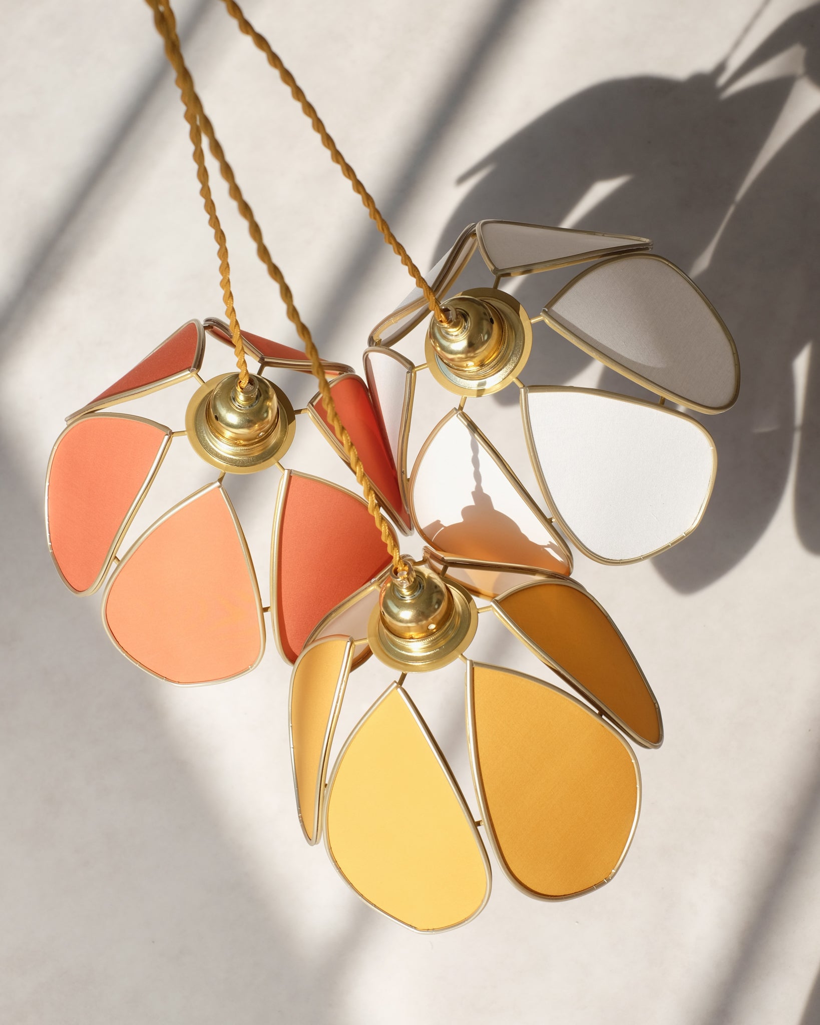 Toutes nos lampes fleurs sont fabriquées en France. Les armatures en métal doré proviennent d'une petite usine dans l'ouest de la France et nous les habillons à Villeurbanne, dans notre atelier.Les lampes Iva, ainsi que les pieds de lampes fleurs et les supports de baladeuse en laiton, sont fabriqués au Portugal.