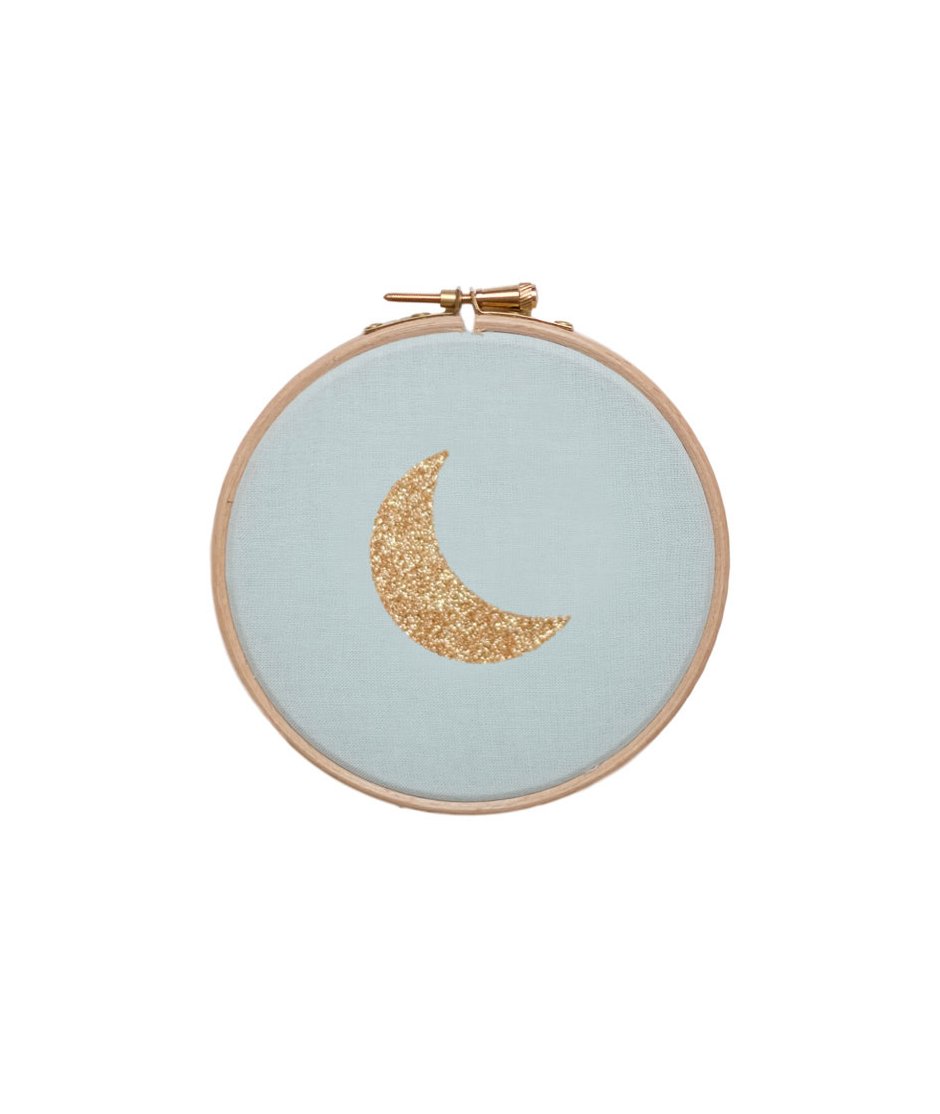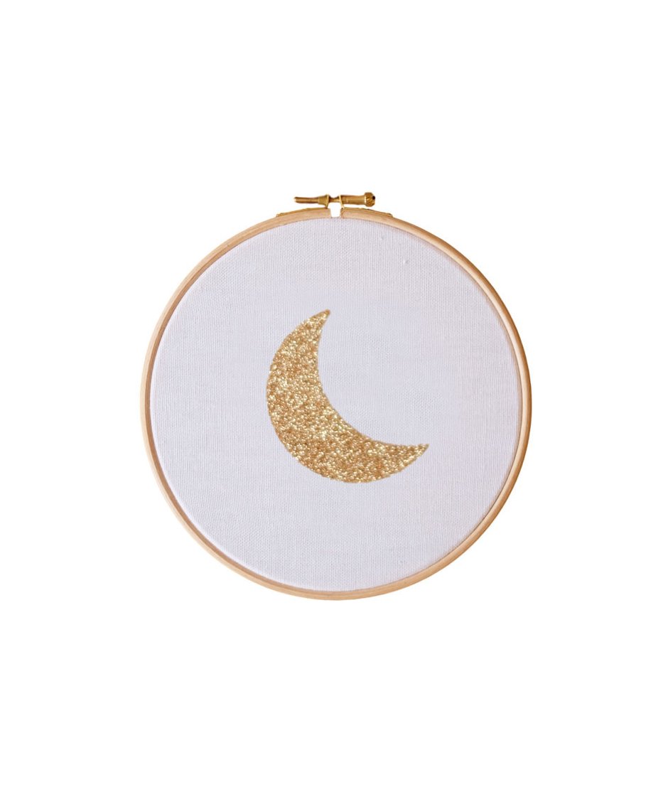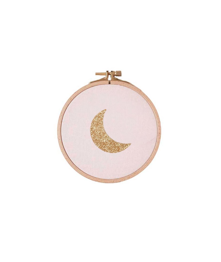 Cadre en bois et tissu réalisé à partir d'un tambour à broder.
