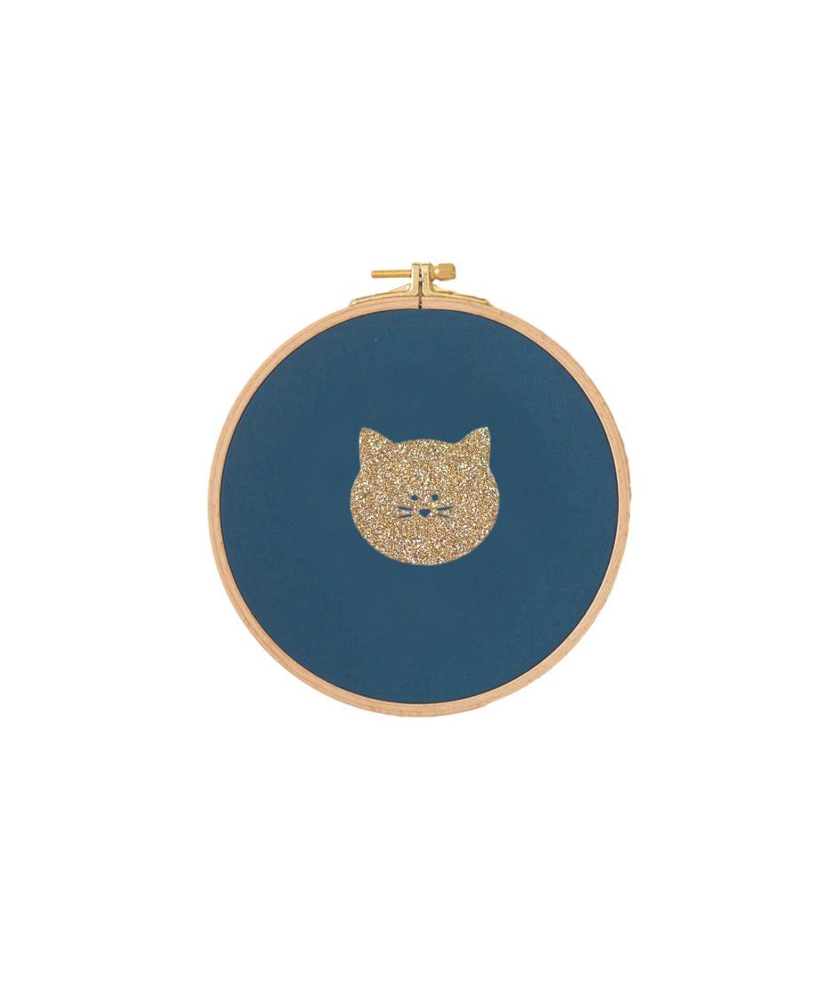 Il comporte une petite tête de chat au milieu d'un tissu uni.