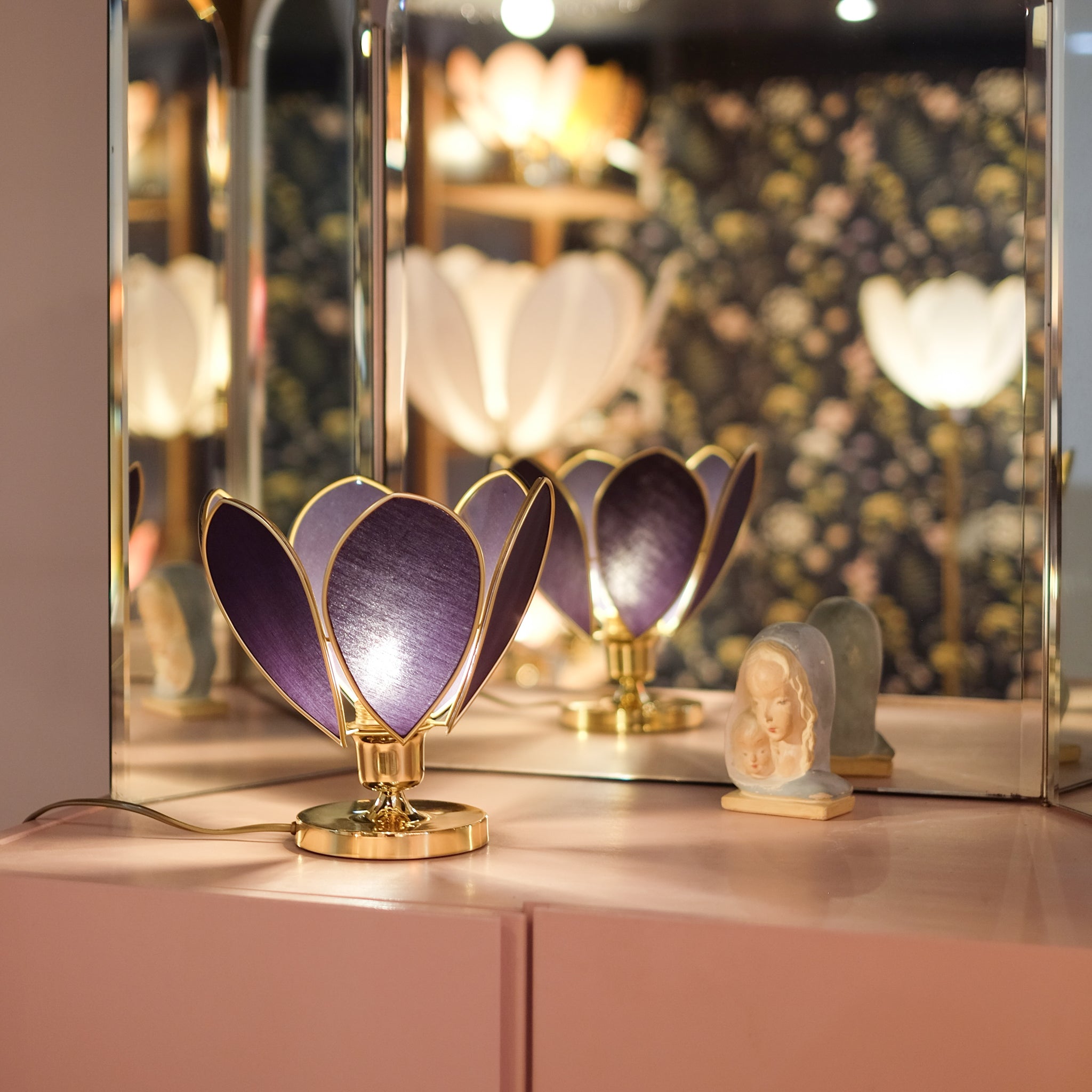 Toutes nos lampes fleurs sont fabriquées en France. Les armatures en métal doré proviennent d'une petite usine dans l'ouest de la France et nous les habillons à Villeurbanne, dans notre atelier.Les lampes Iva, ainsi que les pieds de lampes fleurs et les supports de baladeuse en laiton, sont fabriqués au Portugal.
