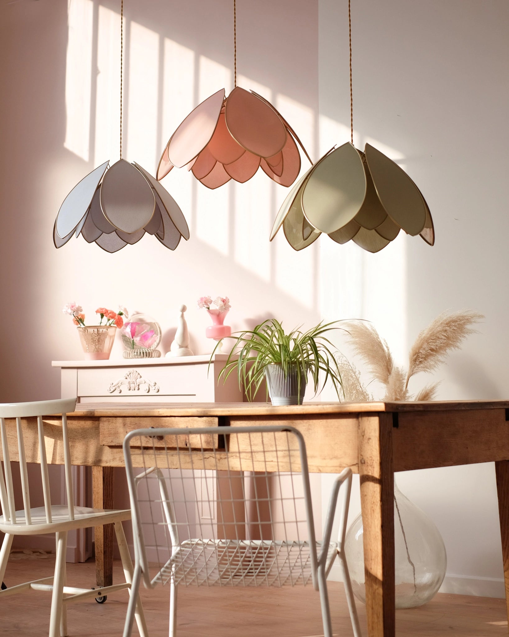 Une grande suspension à 12 pétales, gracieuse et poétique pour illuminer votre pièce.