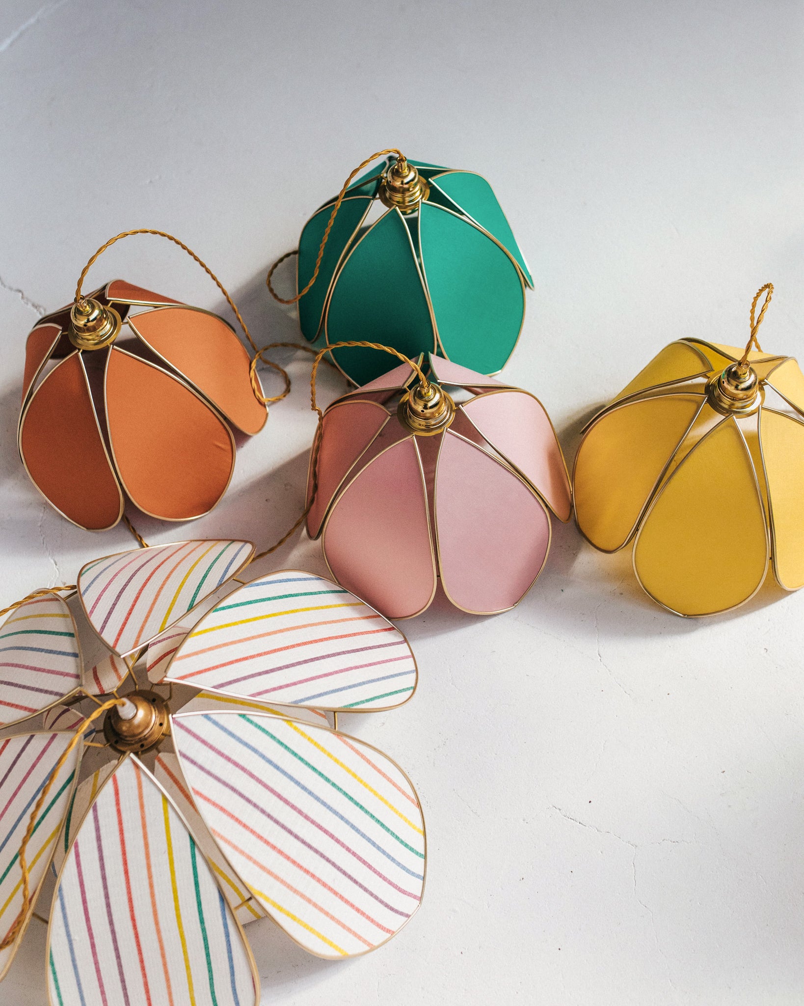 Toutes nos lampes fleurs sont fabriquées en France. Les armatures en métal doré proviennent d'une petite usine dans l'ouest de la France et nous les habillons à Villeurbanne, dans notre atelier.Les lampes Iva, ainsi que les pieds de lampes fleurs et les supports de baladeuse en laiton, sont fabriqués au Portugal.