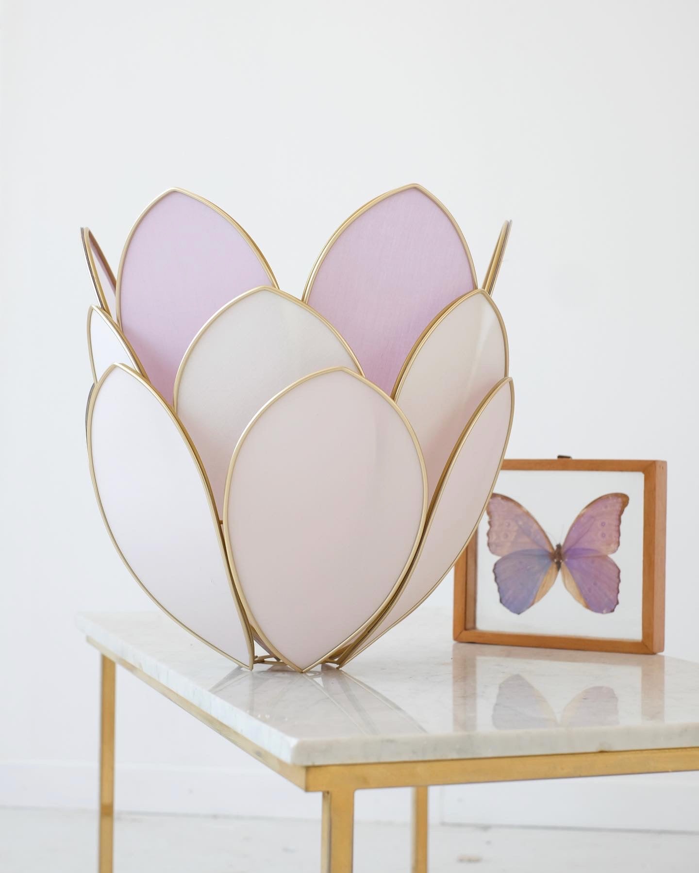 Toutes nos lampes fleurs sont fabriquées en France. Les armatures en métal doré proviennent d'une petite usine dans l'ouest de la France et nous les habillons à Villeurbanne, dans notre atelier.Les lampes Iva, ainsi que les pieds de lampes fleurs et les supports de baladeuse en laiton, sont fabriqués au Portugal.